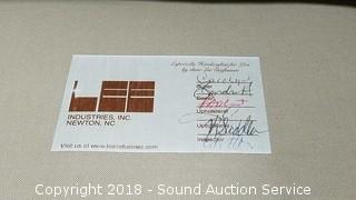 In good condition. Approx. 19" wide seat. Overall approx. 31" W, 32" H, 36" D. Condition of items sold - The auctioneer shall not be responsible for the correct description, authenticity, genuineness of, estimated selling price of, or defect in any lot, and makes no warranty in connection therewith. No allowance will be made or sale set aside on account of any incorrectness, error in cataloging, or any imperfection not noted. No deduction will be allowed on damaged articles as all goods being exposed for public exhibition are sold “as is” and without recourse. All measurements and sizes - are approximate. Claims - No claims will be allowed after goods are removed from premises. All lots - to be sold AS IS, WHERE IS. ALL SALES FINAL, WE DO NOT ACCEPT RETURNS.