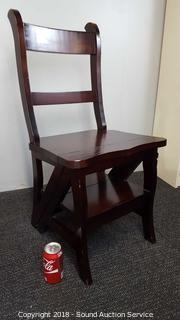 Lot #0145: Solid Wood Amish 2-in-1 Chair Step Ladder