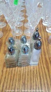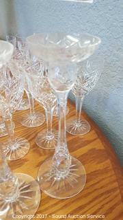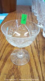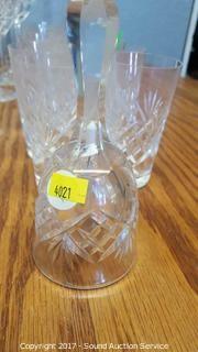 Includes sherbets, cordials, wine glasses, candlestick holders, highball glasses, salt and pepper shakers, and bell.