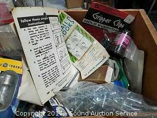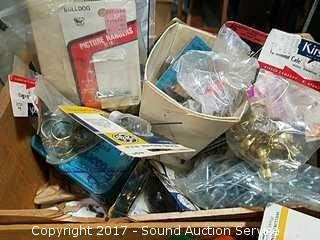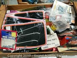 Hooks, picture hanging stuff, screws, staples, drywall stuff, gripper clips, handy hooks, curtain rings, darts and more. PLease refer to photos.