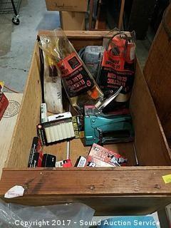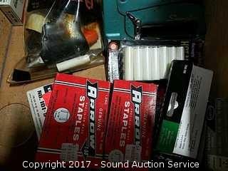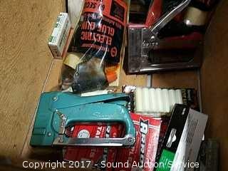 Craftsman Orbital Sander, hot glue guns, pair of staplers, staples, and more. Please refer to photos