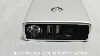 8,000mAh, (2) USB charging ports, 3 light modes. Complete. Tested, works. Condition of items sold - The auctioneer shall not be responsible for the correct description, authenticity, genuineness of, estimated selling price of, or defect in any lot, and makes no warranty in connection therewith. No allowance will be made or sale set aside on account of any incorrectness, error in cataloging, or any imperfection not noted. No deduction will be allowed on damaged articles as all goods being exposed for public exhibition are sold “as is” and without recourse. All measurements and sizes - are approximate. Claims - No claims will be allowed after goods are removed from premises. All lots - to be sold AS IS, WHERE IS. ALL SALES FINAL, WE DO NOT ACCEPT RETURNS.