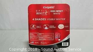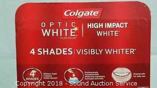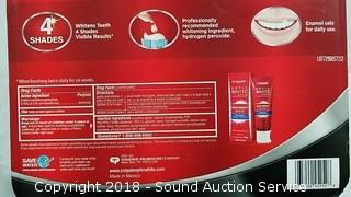 4 Shades Visibly Whiter. 100% Whiter Smile Guaranteed. Condition of items sold - The auctioneer shall not be responsible for the correct description, authenticity, genuineness of, estimated selling price of, or defect in any lot, and makes no warranty in connection therewith. No allowance will be made or sale set aside on account of any incorrectness, error in cataloging, or any imperfection not noted. No deduction will be allowed on damaged articles as all goods being exposed for public exhibition are sold “as is” and without recourse. All measurements and sizes - are approximate. Claims - No claims will be allowed after goods are removed from premises. All lots - to be sold AS IS, WHERE IS. ALL SALES FINAL, WE DO NOT ACCEPT RETURNS.