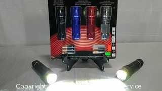 (4) are 350 lumen, (2) are 380 lumen with zoom focus. Comes with batteries. Condition of items sold - The auctioneer shall not be responsible for the correct description, authenticity, genuineness of, estimated selling price of, or defect in any lot, and makes no warranty in connection therewith. No allowance will be made or sale set aside on account of any incorrectness, error in cataloging, or any imperfection not noted. No deduction will be allowed on damaged articles as all goods being exposed for public exhibition are sold “as is” and without recourse. All measurements and sizes - are approximate. Claims - No claims will be allowed after goods are removed from premises. All lots - to be sold AS IS, WHERE IS. ALL SALES FINAL, WE DO NOT ACCEPT RETURNS.