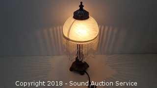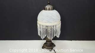 Lot #0052: Art Nouveau Glass Bead & Shade Lamp