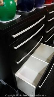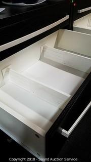 One drawer has adjustable dividers. Bottom drawer is 13" deep and has sections. Overall approx. 48" H, 35-1/2" W, 19" D. Condition of items sold - The auctioneer shall not be responsible for the correct description, authenticity, genuineness of, estimated selling price of, or defect in any lot, and makes no warranty in connection therewith. No allowance will be made or sale set aside on account of any incorrectness, error in cataloging, or any imperfection not noted. No deduction will be allowed on damaged articles as all goods being exposed for public exhibition are sold “as is” and without recourse. All measurements and sizes - are approximate. Claims - No claims will be allowed after goods are removed from premises. All lots - to be sold AS IS, WHERE IS. ALL SALES FINAL, WE DO NOT ACCEPT RETURNS.