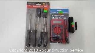 Lot #0353: 6pc. Screwdriver Set, Multi-Tester & LED Flashlight