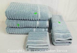 Lot #0380: 7pc. Charisma Luxury Blue Ribbed Towel Set