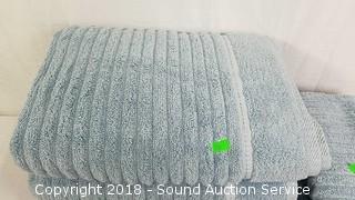 Includes: (3) bath towels, (2) hand towels, and (2) wash cloths. Condition of items sold - The auctioneer shall not be responsible for the correct description, authenticity, genuineness of, estimated selling price of, or defect in any lot, and makes no warranty in connection therewith. No allowance will be made or sale set aside on account of any incorrectness, error in cataloging, or any imperfection not noted. No deduction will be allowed on damaged articles as all goods being exposed for public exhibition are sold “as is” and without recourse. All measurements and sizes - are approximate. Claims - No claims will be allowed after goods are removed from premises. All lots - to be sold AS IS, WHERE IS. ALL SALES FINAL, WE DO NOT ACCEPT RETURNS.