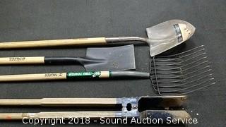 Lot #0284: Pair of Shovels, Post Hole Digger & Pitchfork