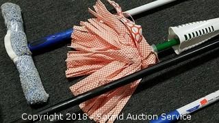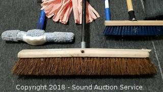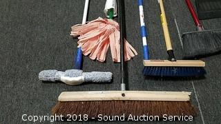 Lot #0351: Push Brooms, Dust Mops, Mop & Dust Pan