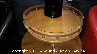 Approx. 27" H. Upper tier is 22" in diameter, lower tier is 27" in diameter. Condition of items sold - The auctioneer shall not be responsible for the correct description, authenticity, genuineness of, estimated selling price of, or defect in any lot, and makes no warranty in connection therewith. No allowance will be made or sale set aside on account of any incorrectness, error in cataloging, or any imperfection not noted. No deduction will be allowed on damaged articles as all goods being exposed for public exhibition are sold “as is” and without recourse. All measurements and sizes - are approximate. Claims - No claims will be allowed after goods are removed from premises. All lots - to be sold AS IS, WHERE IS. ALL SALES FINAL, WE DO NOT ACCEPT RETURNS.