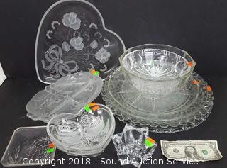 Lot #0102: 12pc. Clear Glass Serving Pieces