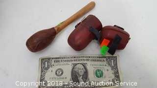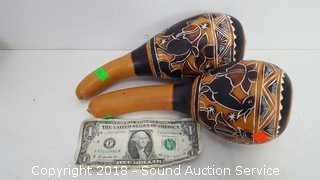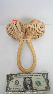 (3) Of The Maraccas Are Made Of Gourd. Condition of items sold - The auctioneer shall not be responsible for the correct description, authenticity, genuineness of, estimated selling price of, or defect in any lot, and makes no warranty in connection therewith. No allowance will be made or sale set aside on account of any incorrectness, error in cataloging, or any imperfection not noted. No deduction will be allowed on damaged articles as all goods being exposed for public exhibition are sold “as is” and without recourse. All measurements and sizes - are approximate. Claims - No claims will be allowed after goods are removed from premises. All lots - to be sold AS IS, WHERE IS. ALL SALES FINAL, WE DO NOT ACCEPT RETURNS.