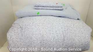 Includes: Comforter, Coverlette and Pillow Shams. Condition of items sold - The auctioneer shall not be responsible for the correct description, authenticity, genuineness of, estimated selling price of, or defect in any lot, and makes no warranty in connection therewith. No allowance will be made or sale set aside on account of any incorrectness, error in cataloging, or any imperfection not noted. No deduction will be allowed on damaged articles as all goods being exposed for public exhibition are sold “as is” and without recourse. All measurements and sizes - are approximate. Claims - No claims will be allowed after goods are removed from premises. All lots - to be sold AS IS, WHERE IS. ALL SALES FINAL, WE DO NOT ACCEPT RETURNS.
