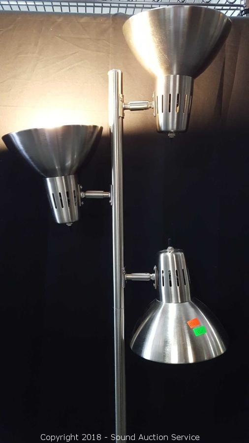 Lot #0045: Brushed Chrome 3-Bulb Floor Lamp