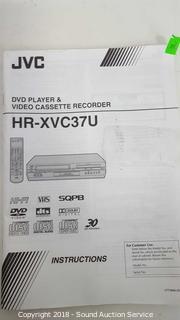 Comes with remote and instruction manual. Model HR.XVC37U. Condition of items sold - The auctioneer shall not be responsible for the correct description, authenticity, genuineness of, estimated selling price of, or defect in any lot, and makes no warranty in connection therewith. No allowance will be made or sale set aside on account of any incorrectness, error in cataloging, or any imperfection not noted. No deduction will be allowed on damaged articles as all goods being exposed for public exhibition are sold “as is” and without recourse. All measurements and sizes - are approximate. Claims - No claims will be allowed after goods are removed from premises. All lots - to be sold AS IS, WHERE IS. ALL SALES FINAL, WE DO NOT ACCEPT RETURNS.