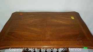 Tabletop is a bit wobbly. Approx. 2ft H, 2ft W, 16" D. Condition of items sold - The auctioneer shall not be responsible for the correct description, authenticity, genuineness of, estimated selling price of, or defect in any lot, and makes no warranty in connection therewith. No allowance will be made or sale set aside on account of any incorrectness, error in cataloging, or any imperfection not noted. No deduction will be allowed on damaged articles as all goods being exposed for public exhibition are sold “as is” and without recourse. All measurements and sizes - are approximate. Claims - No claims will be allowed after goods are removed from premises. All lots - to be sold AS IS, WHERE IS. ALL SALES FINAL, WE DO NOT ACCEPT RETURNS.
