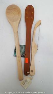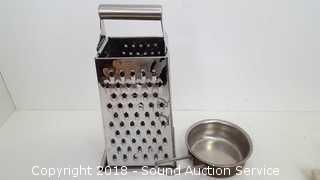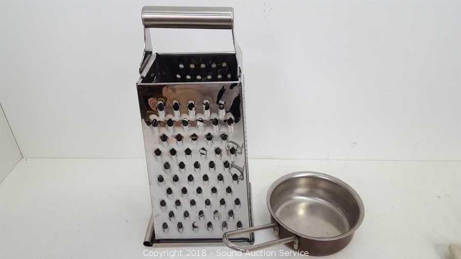 Comes with various kitchen gadgets. Includes: Cheese grater, collander, mixing bowls, oven mits, wooden utensils, boiling pots, skillets. Condition of items sold - The auctioneer shall not be responsible for the correct description, authenticity, genuineness of, estimated selling price of, or defect in any lot, and makes no warranty in connection therewith. No allowance will be made or sale set aside on account of any incorrectness, error in cataloging, or any imperfection not noted. No deduction will be allowed on damaged articles as all goods being exposed for public exhibition are sold “as is” and without recourse. All measurements and sizes - are approximate. Claims - No claims will be allowed after goods are removed from premises. All lots - to be sold AS IS, WHERE IS. ALL SALES FINAL, WE DO NOT ACCEPT RETURNS.