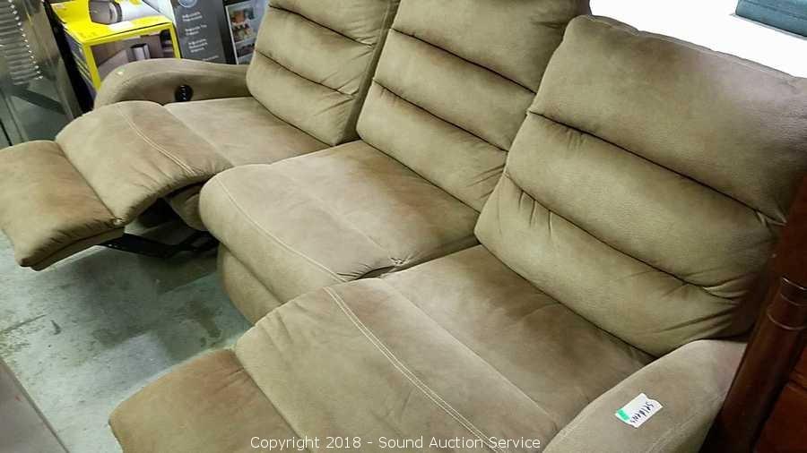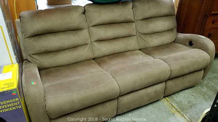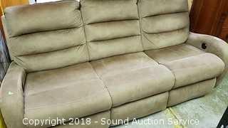 Lot #0143: Seldon's Power Reclining Microfiber Sofa