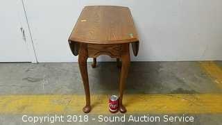 Lot #0242: Solid Oak Drop Leaf Side Table