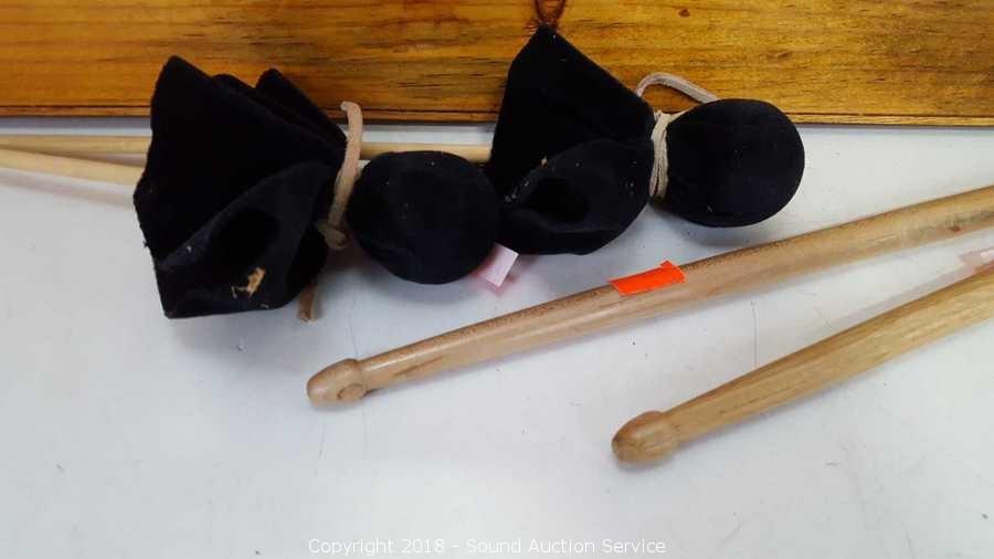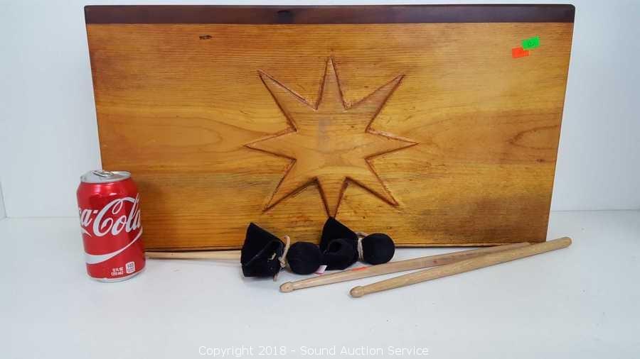 Lot #0082: Solid Pine Percussion Tongue Drum w/Sticks