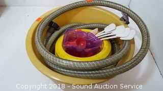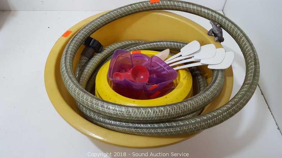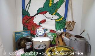 Includes: Watering Can, Achor Pins, Netting, Plant Cart, Small Composte Bucket, Aluminum Lantern, Birch Bucket, Trimmer Line, Drop Starter Kit, Flowering Lawn Alternative, Tiki Torch Bucket, Hose, and more. Condition of items sold - The auctioneer shall not be responsible for the correct description, authenticity, genuineness of, estimated selling price of, or defect in any lot, and makes no warranty in connection therewith. No allowance will be made or sale set aside on account of any incorrectness, error in cataloging, or any imperfection not noted. No deduction will be allowed on damaged articles as all goods being exposed for public exhibition are sold “as is” and without recourse. All measurements and sizes - are approximate. Claims - No claims will be allowed after goods are removed from premises. All lots - to be sold AS IS, WHERE IS. ALL SALES FINAL, WE DO NOT ACCEPT RETURNS.