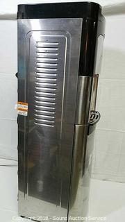 Manufactured in 2016. Model 8LIECH-SCSSS-5L.Takes a 5 gallon water jug underneath. Approx. 41" H, 12" W, 13-1/2" D. Condition of items sold - The auctioneer shall not be responsible for the correct description, authenticity, genuineness of, estimated selling price of, or defect in any lot, and makes no warranty in connection therewith. No allowance will be made or sale set aside on account of any incorrectness, error in cataloging, or any imperfection not noted. No deduction will be allowed on damaged articles as all goods being exposed for public exhibition are sold “as is” and without recourse. All measurements and sizes - are approximate. Claims - No claims will be allowed after goods are removed from premises. All lots - to be sold AS IS, WHERE IS. ALL SALES FINAL, WE DO NOT ACCEPT RETURNS.