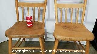 Lot #0213: Vtg. Solid Wood Michigan Farm Chairs