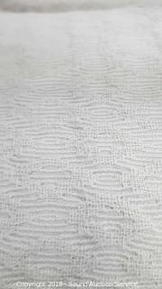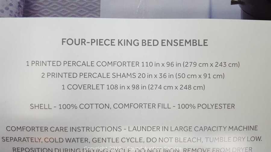 Includes: (1) comforter, (2) shams, (1) coverlette. Condition of items sold - The auctioneer shall not be responsible for the correct description, authenticity, genuineness of, estimated selling price of, or defect in any lot, and makes no warranty in connection therewith. No allowance will be made or sale set aside on account of any incorrectness, error in cataloging, or any imperfection not noted. No deduction will be allowed on damaged articles as all goods being exposed for public exhibition are sold “as is” and without recourse. All measurements and sizes - are approximate. Claims - No claims will be allowed after goods are removed from premises. All lots - to be sold AS IS, WHERE IS. ALL SALES FINAL, WE DO NOT ACCEPT RETURNS.