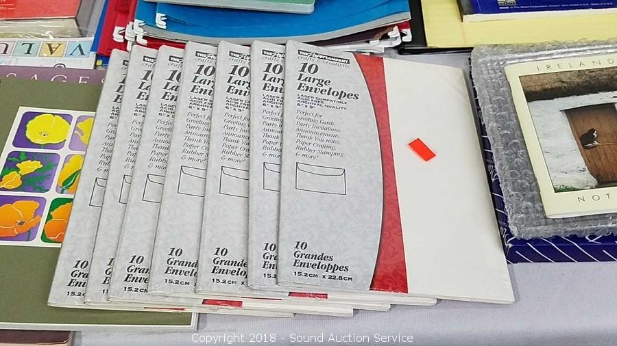Includes: File Folders, 8" x 10" Clear Picture Frames, 6" x 9" Envelopes, and more. Condition of items sold - The auctioneer shall not be responsible for the correct description, authenticity, genuineness of, estimated selling price of, or defect in any lot, and makes no warranty in connection therewith. No allowance will be made or sale set aside on account of any incorrectness, error in cataloging, or any imperfection not noted. No deduction will be allowed on damaged articles as all goods being exposed for public exhibition are sold “as is” and without recourse. All measurements and sizes - are approximate. Claims - No claims will be allowed after goods are removed from premises. All lots - to be sold AS IS, WHERE IS. ALL SALES FINAL, WE DO NOT ACCEPT RETURNS.
