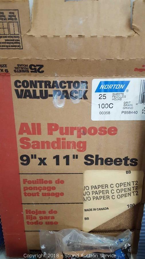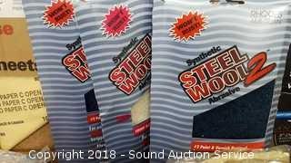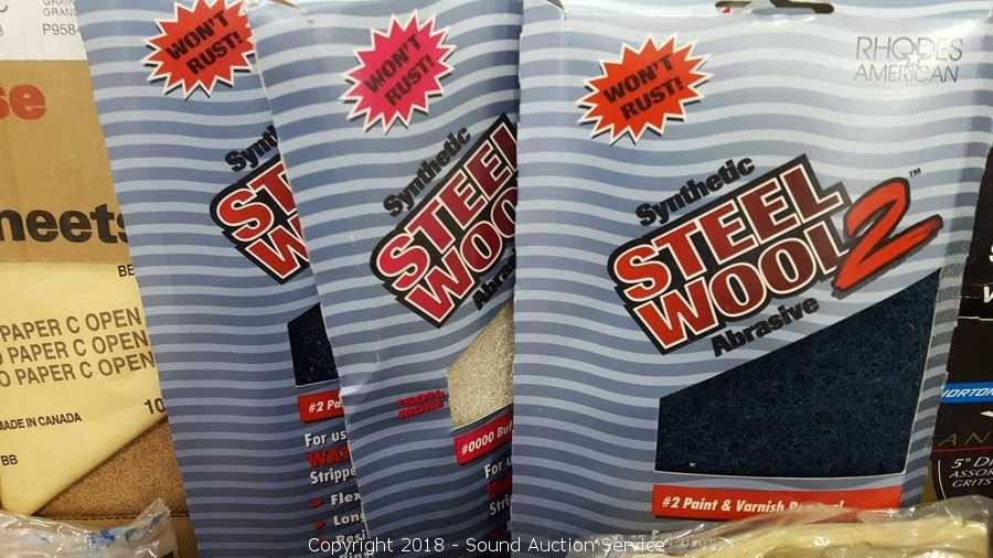 Includes: Sanding blocks, steel wool and more. Condition of items sold - The auctioneer shall not be responsible for the correct description, authenticity, genuineness of, estimated selling price of, or defect in any lot, and makes no warranty in connection therewith. No allowance will be made or sale set aside on account of any incorrectness, error in cataloging, or any imperfection not noted. No deduction will be allowed on damaged articles as all goods being exposed for public exhibition are sold “as is” and without recourse. All measurements and sizes - are approximate. Claims - No claims will be allowed after goods are removed from premises. All lots - to be sold AS IS, WHERE IS. ALL SALES FINAL, WE DO NOT ACCEPT RETURNS.