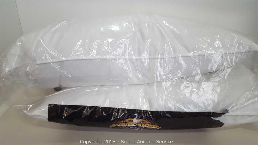 Pillow in a pillow. 500 thread count, 550 fill power. 20" x 28". Condition of items sold - The auctioneer shall not be responsible for the correct description, authenticity, genuineness of, estimated selling price of, or defect in any lot, and makes no warranty in connection therewith. No allowance will be made or sale set aside on account of any incorrectness, error in cataloging, or any imperfection not noted. No deduction will be allowed on damaged articles as all goods being exposed for public exhibition are sold “as is” and without recourse. All measurements and sizes - are approximate. Claims - No claims will be allowed after goods are removed from premises. All lots - to be sold AS IS, WHERE IS. ALL SALES FINAL, WE DO NOT ACCEPT RETURNS.