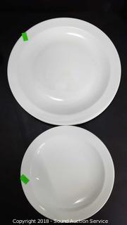 Serving bowls are Midwinter by Wedgewood. (4) Sentura Corning dinner plates (3) Salad plates. Condition of items sold - The auctioneer shall not be responsible for the correct description, authenticity, genuineness of, estimated selling price of, or defect in any lot, and makes no warranty in connection therewith. No allowance will be made or sale set aside on account of any incorrectness, error in cataloging, or any imperfection not noted. No deduction will be allowed on damaged articles as all goods being exposed for public exhibition are sold “as is” and without recourse. All measurements and sizes - are approximate. Claims - No claims will be allowed after goods are removed from premises. All lots - to be sold AS IS, WHERE IS. ALL SALES FINAL, WE DO NOT ACCEPT RETURNS.
