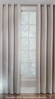 Each panel is 52" x 84". Grommet Panel. Ivory color. Condition of items sold - The auctioneer shall not be responsible for the correct description, authenticity, genuineness of, estimated selling price of, or defect in any lot, and makes no warranty in connection therewith. No allowance will be made or sale set aside on account of any incorrectness, error in cataloging, or any imperfection not noted. No deduction will be allowed on damaged articles as all goods being exposed for public exhibition are sold “as is” and without recourse. All measurements and sizes - are approximate. Claims - No claims will be allowed after goods are removed from premises. All lots - to be sold AS IS, WHERE IS. ALL SALES FINAL, WE DO NOT ACCEPT RETURNS.