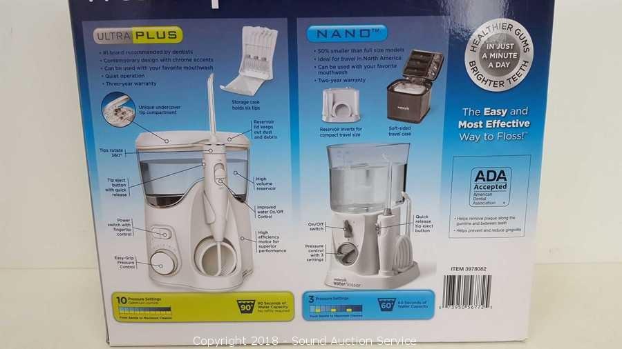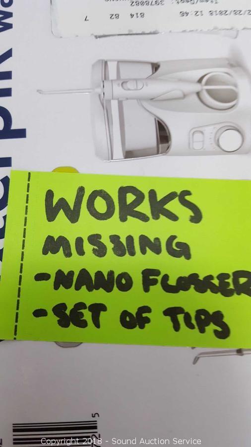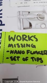 Missing the Nano Flosser and Set of Tips, Still comes with 5 Other Tips. Condition of items sold - The auctioneer shall not be responsible for the correct description, authenticity, genuineness of, estimated selling price of, or defect in any lot, and makes no warranty in connection therewith. No allowance will be made or sale set aside on account of any incorrectness, error in cataloging, or any imperfection not noted. No deduction will be allowed on damaged articles as all goods being exposed for public exhibition are sold “as is” and without recourse. All measurements and sizes - are approximate. Claims - No claims will be allowed after goods are removed from premises. All lots - to be sold AS IS, WHERE IS. ALL SALES FINAL, WE DO NOT ACCEPT RETURNS.