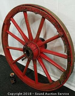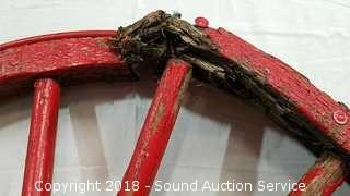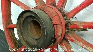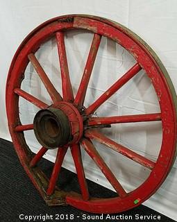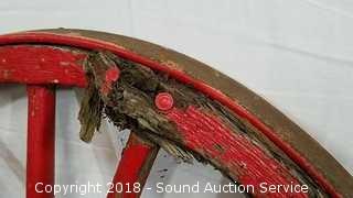 Lot #0130: 41" Antique Wooden Wagon Wheel w/Steel Tire