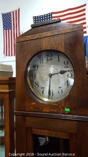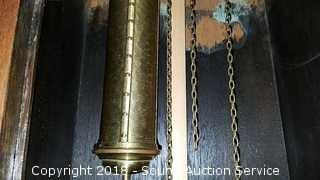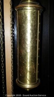 Works! Hammered brass weights. Approx. 7ft H, 16" W, 12" D. Condition of items sold - The auctioneer shall not be responsible for the correct description, authenticity, genuineness of, estimated selling price of, or defect in any lot, and makes no warranty in connection therewith. No allowance will be made or sale set aside on account of any incorrectness, error in cataloging, or any imperfection not noted. No deduction will be allowed on damaged articles as all goods being exposed for public exhibition are sold “as is” and without recourse. All measurements and sizes - are approximate. Claims - No claims will be allowed after goods are removed from premises. All lots - to be sold AS IS, WHERE IS. ALL SALES FINAL, WE DO NOT ACCEPT RETURNS.
