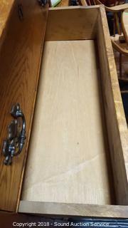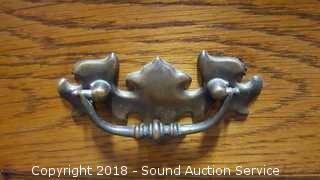 Solid wood, dovetail construction, skeleton key locks (no key). In good condition. Approx. 47" H, 33" W, 18" D. Condition of items sold - The auctioneer shall not be responsible for the correct description, authenticity, genuineness of, estimated selling price of, or defect in any lot, and makes no warranty in connection therewith. No allowance will be made or sale set aside on account of any incorrectness, error in cataloging, or any imperfection not noted. No deduction will be allowed on damaged articles as all goods being exposed for public exhibition are sold “as is” and without recourse. All measurements and sizes - are approximate. Claims - No claims will be allowed after goods are removed from premises. All lots - to be sold AS IS, WHERE IS. ALL SALES FINAL, WE DO NOT ACCEPT RETURNS.