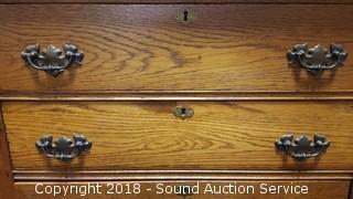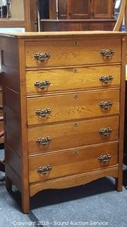 Lot #0131: Antique Quarter Sawn Oak 5-Drawer Highboy Dresser