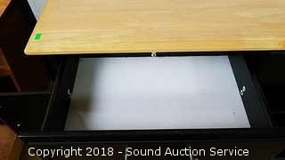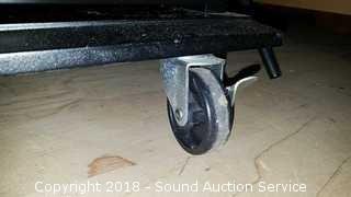 On casters, with 2 drawers and lower storage. Approx. 36" tall, 43" long, 18" deep. Condition of items sold - The auctioneer shall not be responsible for the correct description, authenticity, genuineness of, estimated selling price of, or defect in any lot, and makes no warranty in connection therewith. No allowance will be made or sale set aside on account of any incorrectness, error in cataloging, or any imperfection not noted. No deduction will be allowed on damaged articles as all goods being exposed for public exhibition are sold “as is” and without recourse. All measurements and sizes - are approximate. Claims - No claims will be allowed after goods are removed from premises. All lots - to be sold AS IS, WHERE IS. ALL SALES FINAL, WE DO NOT ACCEPT RETURNS.