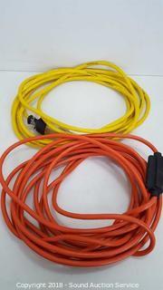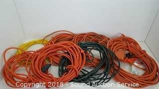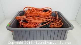 Lot #0209: Grey Tote Loaded with Various Extension Cords