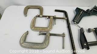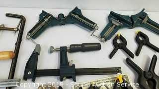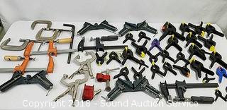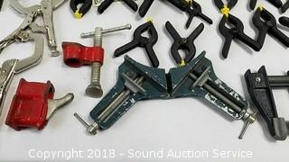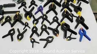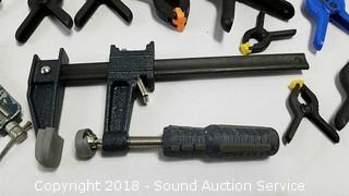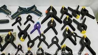 Includes: Rail Clamps, C-Clamps, Spring Clamps, Right Angle Clamps and more. Condition of items sold - The auctioneer shall not be responsible for the correct description, authenticity, genuineness of, estimated selling price of, or defect in any lot, and makes no warranty in connection therewith. No allowance will be made or sale set aside on account of any incorrectness, error in cataloging, or any imperfection not noted. No deduction will be allowed on damaged articles as all goods being exposed for public exhibition are sold “as is” and without recourse. All measurements and sizes - are approximate. Claims - No claims will be allowed after goods are removed from premises. All lots - to be sold AS IS, WHERE IS. ALL SALES FINAL, WE DO NOT ACCEPT RETURNS.