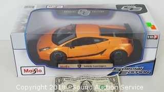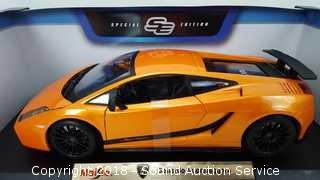 Comes in original box. Lamborghini Gallardo Superleggera. Condition of items sold - The auctioneer shall not be responsible for the correct description, authenticity, genuineness of, estimated selling price of, or defect in any lot, and makes no warranty in connection therewith. No allowance will be made or sale set aside on account of any incorrectness, error in cataloging, or any imperfection not noted. No deduction will be allowed on damaged articles as all goods being exposed for public exhibition are sold “as is” and without recourse. All measurements and sizes - are approximate. Claims - No claims will be allowed after goods are removed from premises. All lots - to be sold AS IS, WHERE IS. ALL SALES FINAL, WE DO NOT ACCEPT RETURNS.