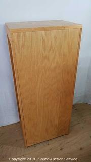 Some wear in the finish on the top. Approx. 40" tall, 17" wide, 12" deep. Condition of items sold - The auctioneer shall not be responsible for the correct description, authenticity, genuineness of, estimated selling price of, or defect in any lot, and makes no warranty in connection therewith. No allowance will be made or sale set aside on account of any incorrectness, error in cataloging, or any imperfection not noted. No deduction will be allowed on damaged articles as all goods being exposed for public exhibition are sold “as is” and without recourse. All measurements and sizes - are approximate. Claims - No claims will be allowed after goods are removed from premises. All lots - to be sold AS IS, WHERE IS. ALL SALES FINAL, WE DO NOT ACCEPT RETURNS.