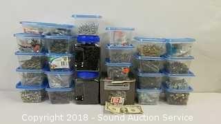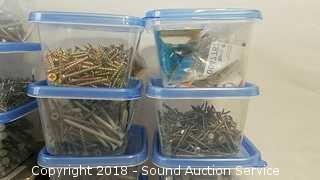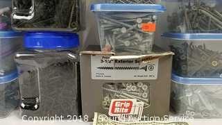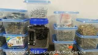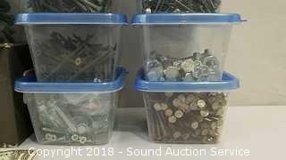 Nails, screws, and more. Condition of items sold - The auctioneer shall not be responsible for the correct description, authenticity, genuineness of, estimated selling price of, or defect in any lot, and makes no warranty in connection therewith. No allowance will be made or sale set aside on account of any incorrectness, error in cataloging, or any imperfection not noted. No deduction will be allowed on damaged articles as all goods being exposed for public exhibition are sold “as is” and without recourse. All measurements and sizes - are approximate. Claims - No claims will be allowed after goods are removed from premises. All lots - to be sold AS IS, WHERE IS. ALL SALES FINAL, WE DO NOT ACCEPT RETURNS.