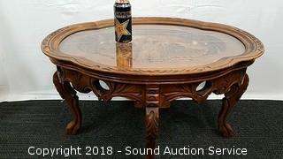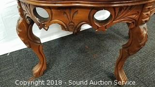 Lot #0137: Vtg. Unique Ornate Carved Eagle Glass Top Table
