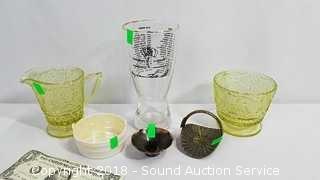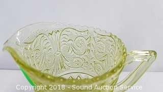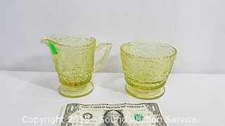 Lot #0325: Vtg. Yellow/Green Depression Glass Cream & Sugar