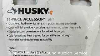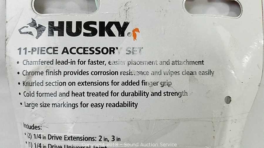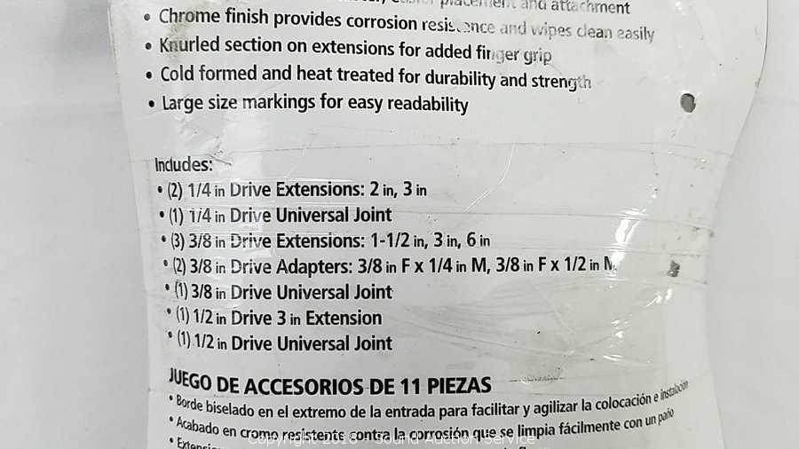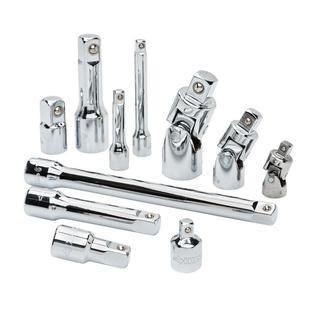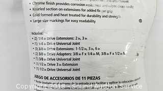 Set includes 6 Extensions, two 1/4 in. drive, 2 in. and 3 in., three 3/8 in. drive, 1-1/2in. , 3 in., 6 in. and one 1/2 in. drive, 3in, 3 Universal Joints, 1/4in., 3/8in., 1/2 in. drives, and 2 drive adapters, a 3/8 in. male x 1/4 in. female and a 3/8 in. male x 1/2 in. female. Condition of items sold - The auctioneer shall not be responsible for the correct description, authenticity, genuineness of, estimated selling price of, or defect in any lot, and makes no warranty in connection therewith. No allowance will be made or sale set aside on account of any incorrectness, error in cataloging, or any imperfection not noted. No deduction will be allowed on damaged articles as all goods being exposed for public exhibition are sold “as is” and without recourse. All measurements and sizes - are approximate. Claims - No claims will be allowed after goods are removed from premises. All lots - to be sold AS IS, WHERE IS. ALL SALES FINAL, WE DO NOT ACCEPT RETURNS.