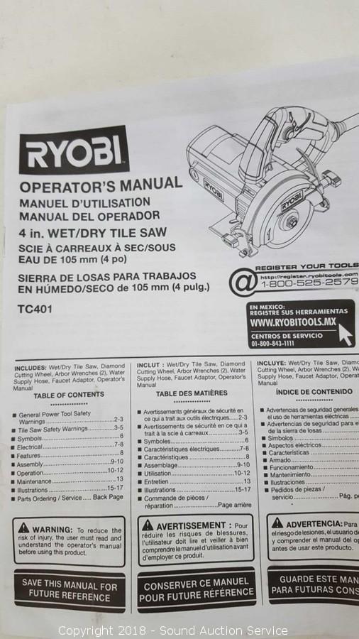 Lot #0092: Ryobi 4" Handheld Tile Saw